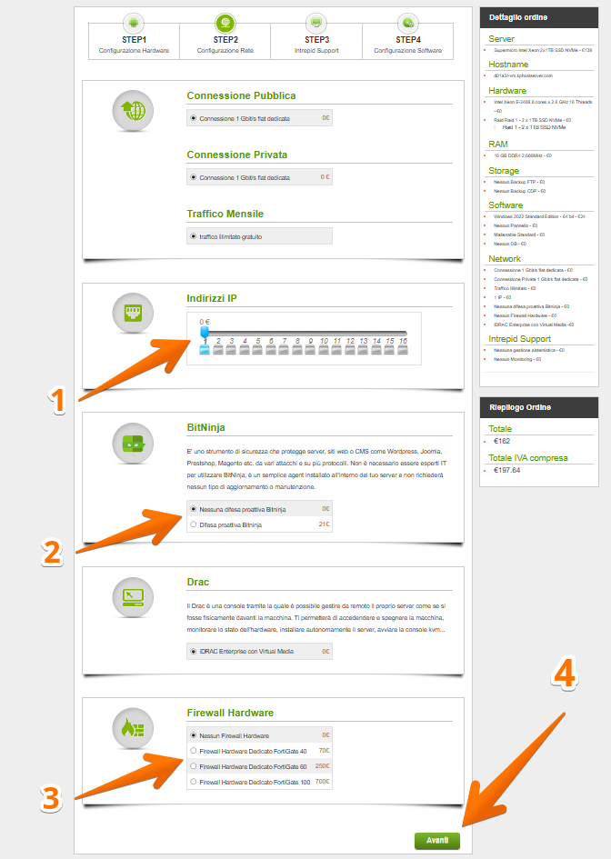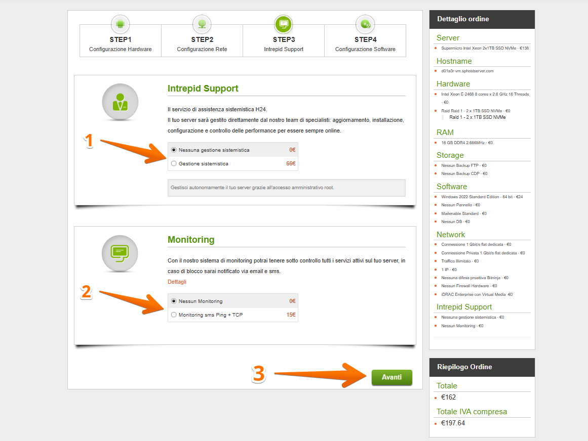 Il servizio Intrepidsupport può essere selezionato solo in fase di ordine e non è possibile aggiungerlo una volta che il server è stato già attivato.
